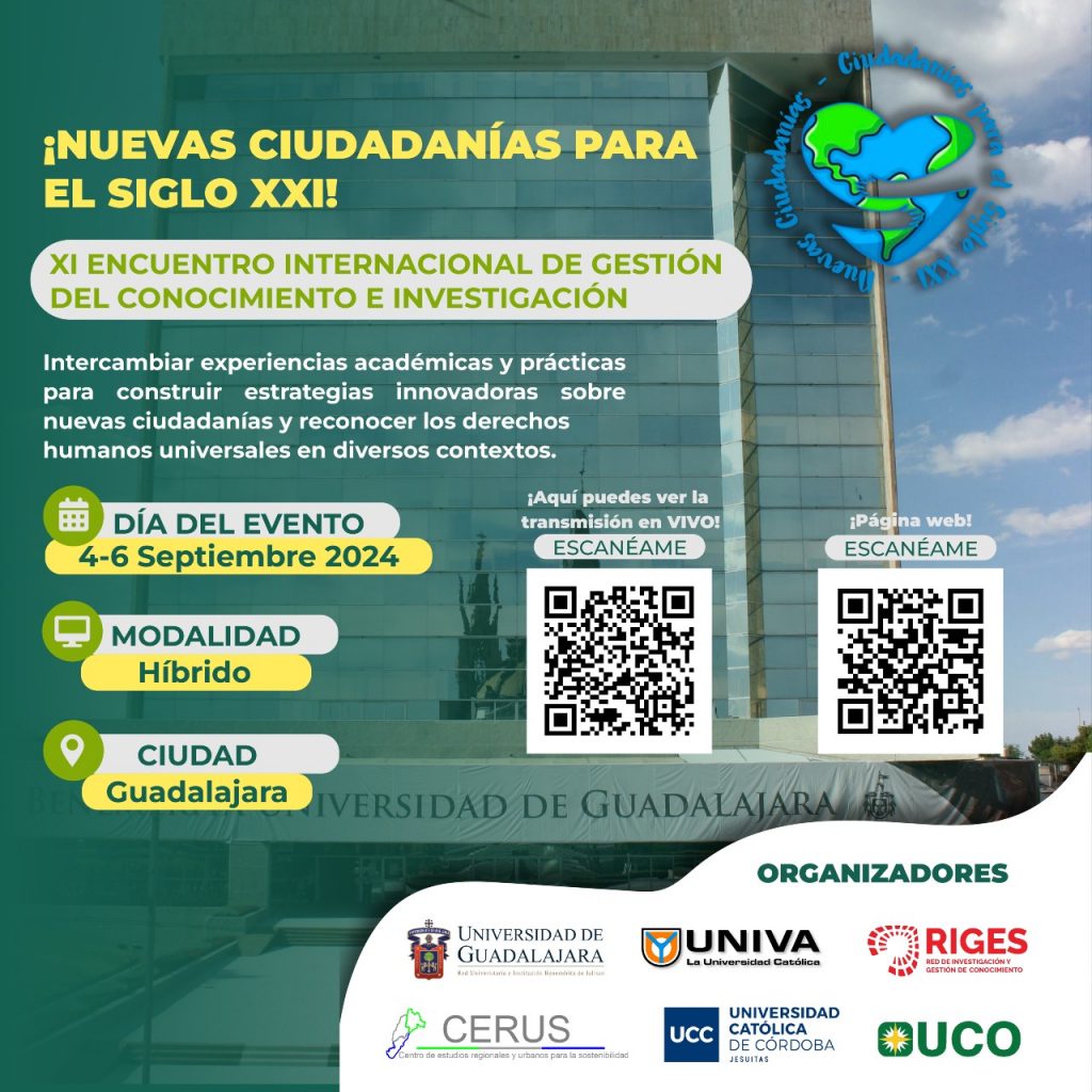 El XI Encuentro Internacional de Gestión de Conocimiento e Investigación, busca sentar las bases para el intercambio de experiencias académicas y prácticas en los escenarios locales, regionales, nacionales e internacionales y la realización de trabajos mancomunados entre los países de Latinoamérica y del Caribe, en donde la comunidad Científica – Académica y la Sociedad en su conjunto, proponen un diálogo de saberes que permitan construir y producir estrategias para abordar la idea Nuevas Ciudadanías – Ciudadanías para el Siglo XXI, y que permitan el reconocimiento de experiencias en torno a otras formas de comprender la dignidad intrínseca y de los derechos iguales e inalienables de todos los miembros de la familia humana, no sólo en los escenarios naturales de la academia, sino de las culturas y los procesos humanos en sí mismos, identificadas por sus impactos y factores de transformación de contextos.